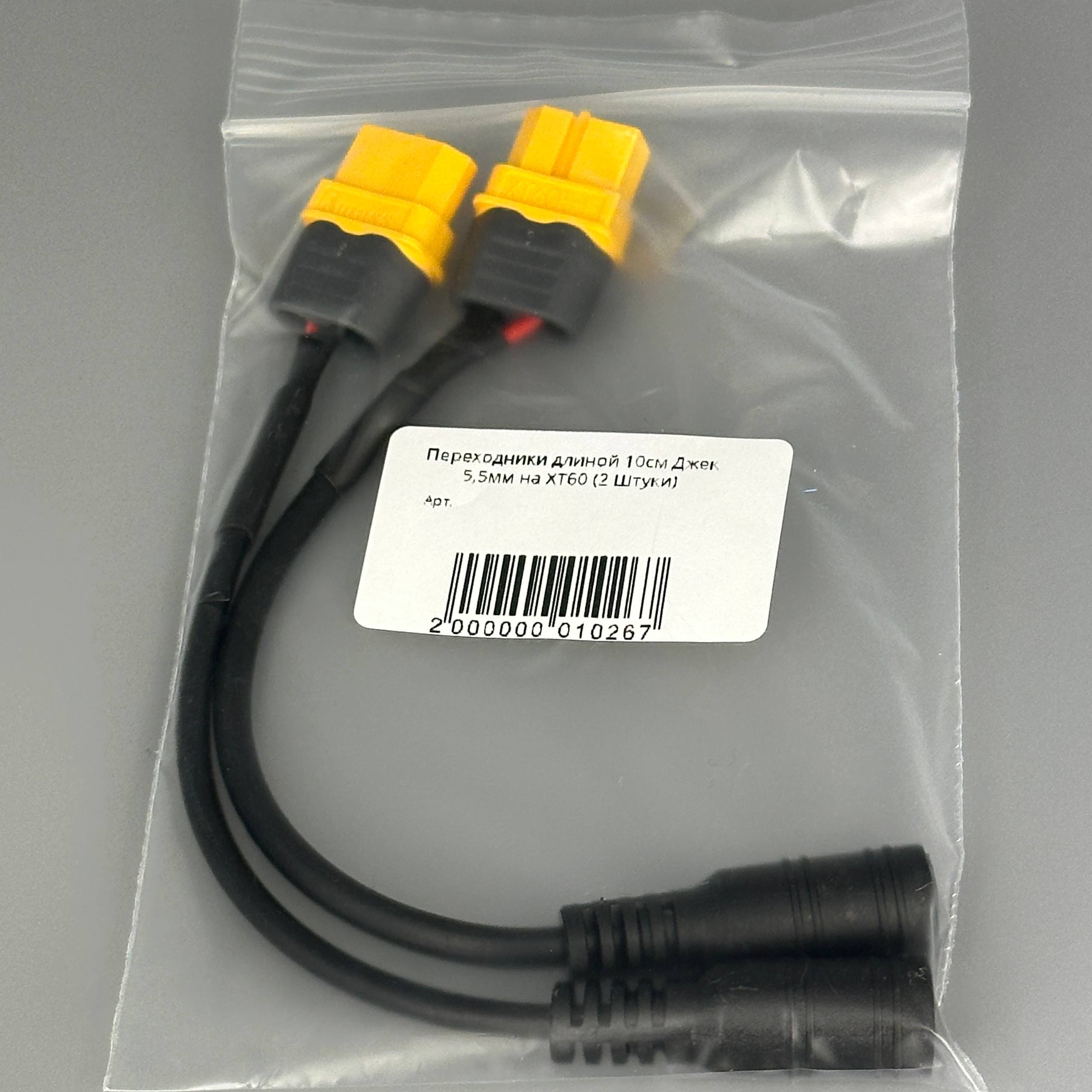 Переходники длиной 10см Джек 5,5мм на XT60 (2 Штуки)