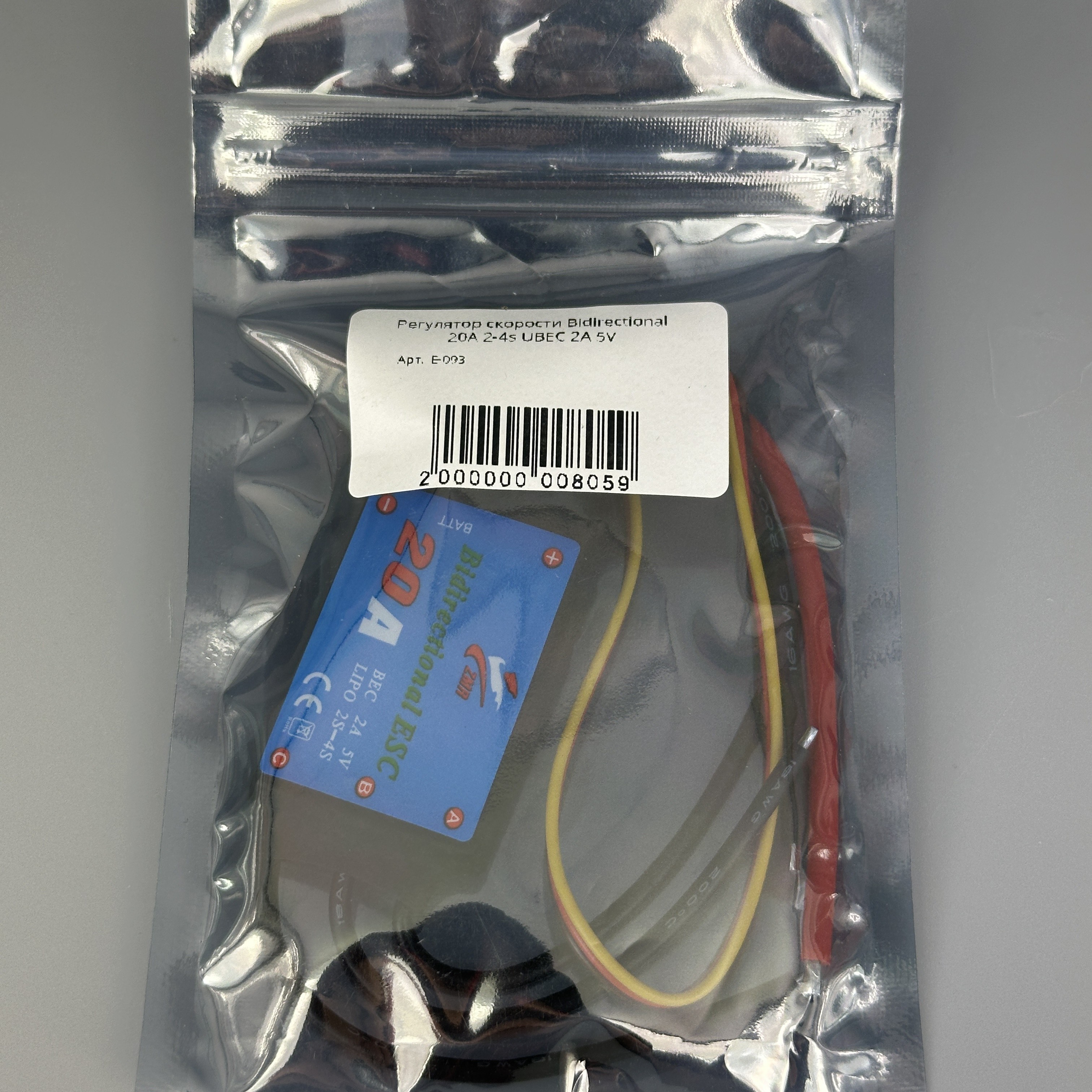 Технические характеристики Регулятора скорости Bidirectional 20A 2-4s UBEC 2A 5V: